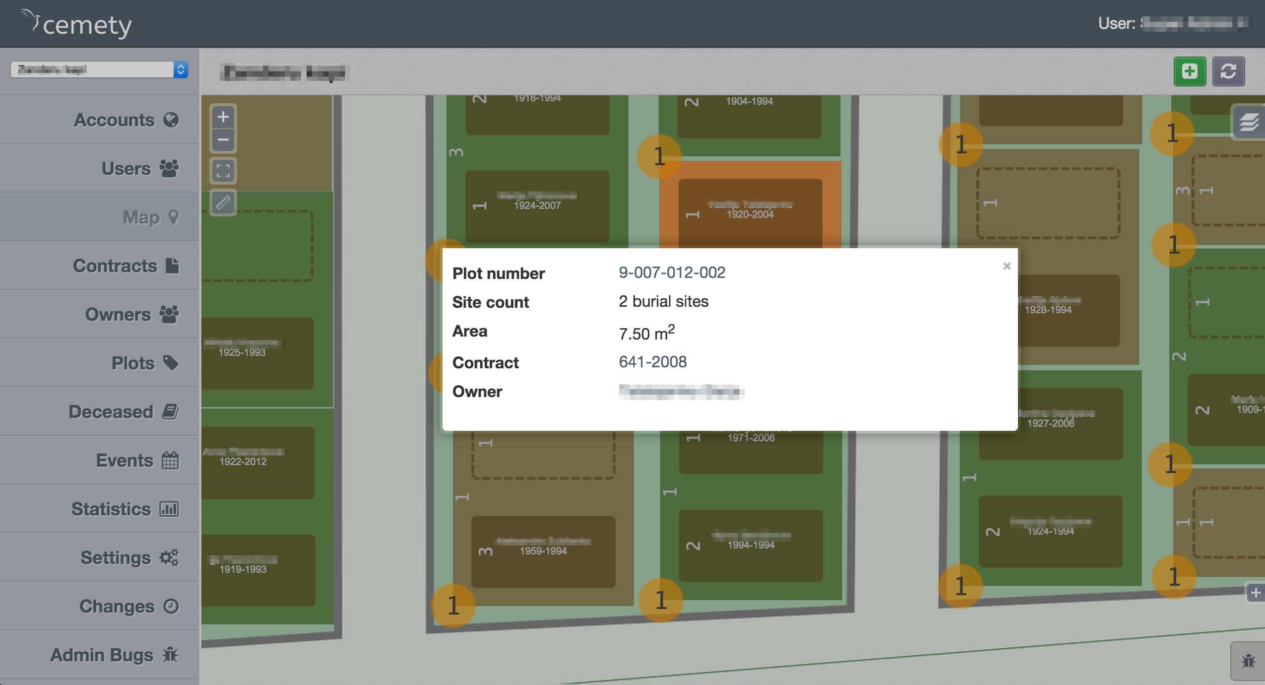 - Planul / harta digitalizată a cimitirului;